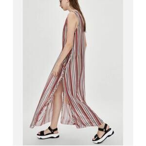 Stripe, pull over, side slits, has ties on the side and can be tied up