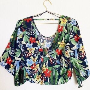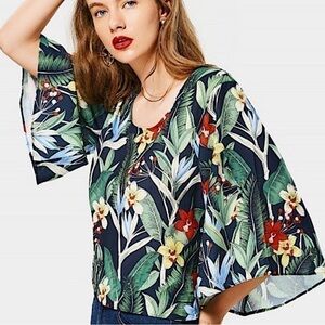 ZARA Tropical Bell Sleeve Blouse Size Medium (343)