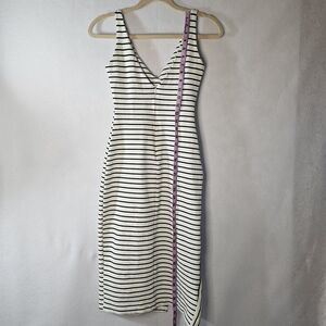 ZARA Trufaluc Collection Sz S Black & White Stripe Lined Fitted Dress Slit