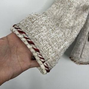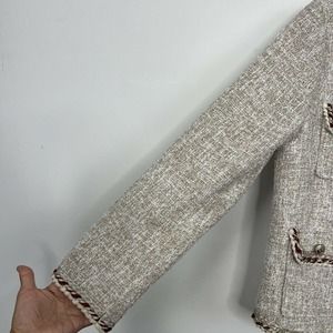 ZARA Tweed Blazer Jacket last $ drop /Large Tan W Ribbon Trim Pockets/offers!!