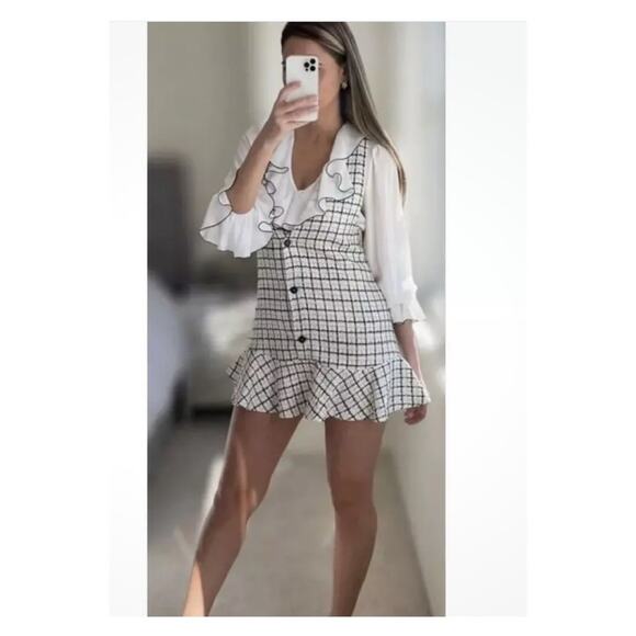 ZARA Tweed Pinafore Ruffle Hem Mini Dress XS