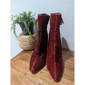 ZARA VELVET ANKLE HIGH HEEL WOMEN'S BURGUNDY BOOT size 38/7.5
