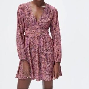 ZARA V-Neck Boho Coquette Fit and Flare Low V-Neck Dress Size Medium