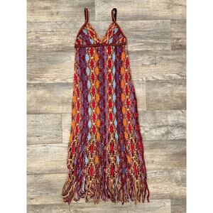 ZARA V-Neck Fringe Hem Multicolor Midi Dress NWT | Size M/L