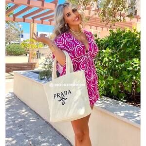 Fuchsia mini dress with tied deep V-neckline. Full cut below-the-elbow-length sleeves. Contrast beading detail. Back hidden in-seam zip closure. From ZARA, in size S. New with tags.