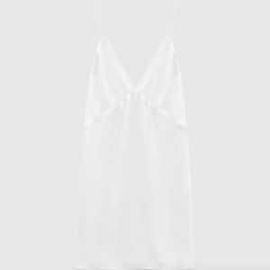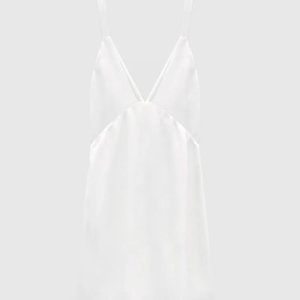 Short dress with a V-neckline and V-Back, straps, lining and invisible side zip fastening. Brand new with tags. Fits like a size 6-8.