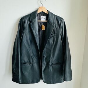 ZARA Vegan Leather Blazer Black Single Button Size S With Flaws