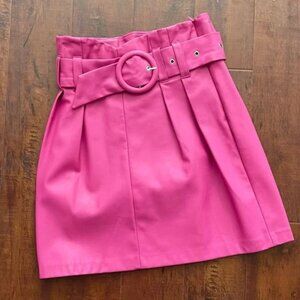 ZARA Vegan Leather Skirt - Belted, High Waisted, Fuchsia Pink - Sz Small