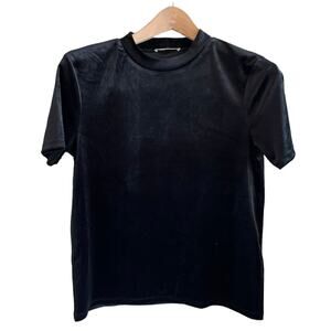 ZARA Velvet Blouse Top Black Short Sleeve Crew Neck Boxy Fit Stretch Medium EUC