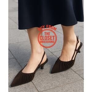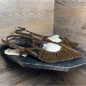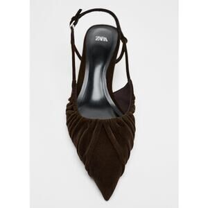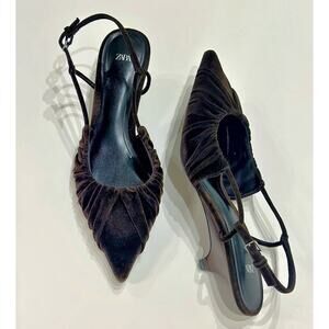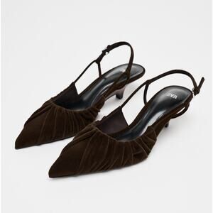 ZARA Velvet Slingback Kitten Heels NWT – Brown Ruched Pointed Toe, Size 7.5