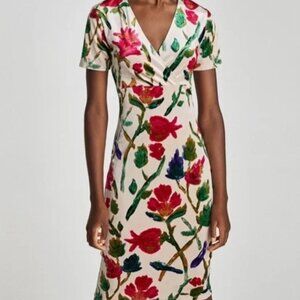 ZARA Velvet Velour Floral Midi Dress V-Neck | Size M
