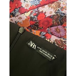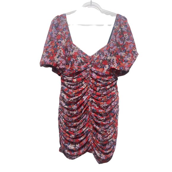 ZARA Vibrant Floral Print Ruched Puff-Sleeve Mini Dress Lined Size XL