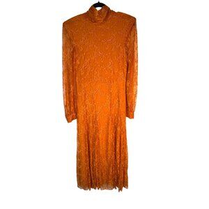 This dress features delicate lace and a vibrant hue, offering a blend of sophistication and modern style. Ideal for those who appreciate intricate details. Zara dress, lace midi dress, burnt orange dress, elegant dress, formal dress, long sleeve dress, boho style dress, women's fashion, Moroccan dress, polyamide dress, viscose dress, whimsical, dainty, girly, feminine, victorian, delicate, military ball, gala, ceremony, anniversary, birthday, holidays, thanksgiving, Fall, autumn,ace midi dress, orange, burnt orange, tangerine, floral embroidery, sheer overlay, delicate lace, lightweight fabric, semi-sheer texture, long sleeve, mock neck, A-line silhouette, fitted bodice, flowy skirt, elegant, feminine, vintage-inspired, classic, chic, stylish, sophisticated, romantic, fall fashion, autumn tones, evening wear, wedding guest dress, cocktail attire, dinner party, graceful, timeless, statement piece