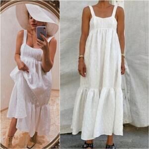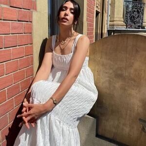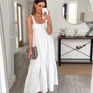 ZARA Voluminous Textured Weave Dress US Small White Bridal Wedding Sundress