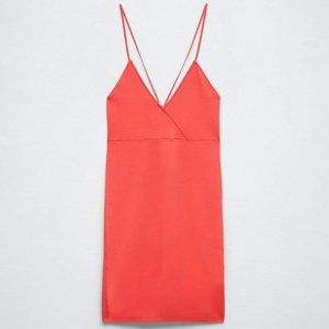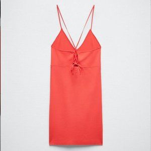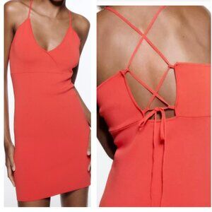 ZARA WATERMELON RED BANDAGE KNIT CUT OUT LACE UP CROSS BACK DRESS $49.90