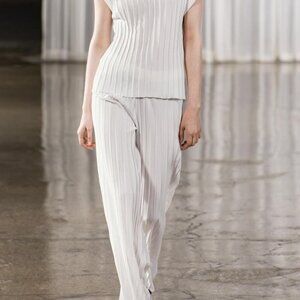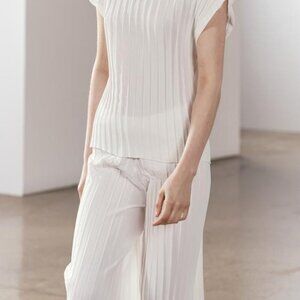 ZARA WHITE HIGH WAIST PLEATED PANTS WIDE LEG