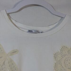 ZARA WHITE LACE APPLIQUE TEE SHORT SLEEVE SIZE SMALL