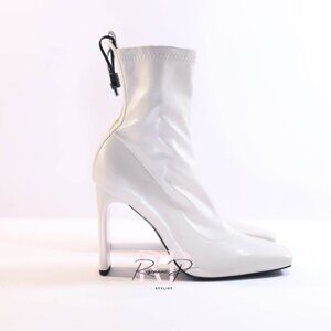 ZARA WHITE SOCK BOOT HEEL FAUX LEATHER SZ 36 NWT