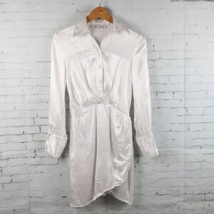ZARA WHITE SATIN EFFECT LONG SLEEVE BUTTON DOWN DRESS SIZE SMALL