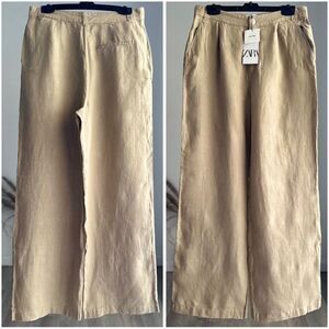 ZARA WIDE LEG LINEN PANTS LIGHT KHAKI