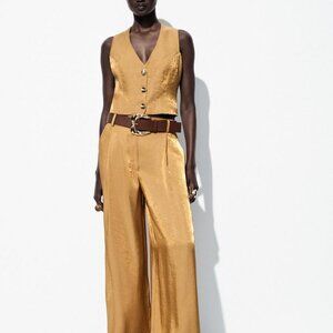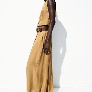 ZARA WIDE SATIN TROUSERS WITH BELT