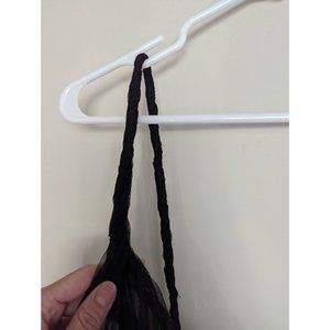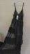 Long V-neck dress with thin straps. Tulle and ruffle appliqués. Tonal interior lining. Side hidden in-seam zip closure.