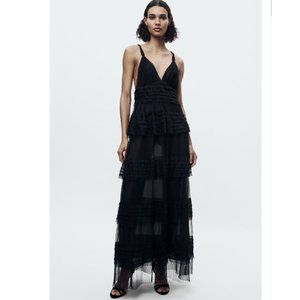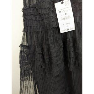 ZARA WOMAN $139 RUFFLED TULLE DRESS ZW COLLECTION BLACK XS S M L REF: 8936/113