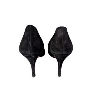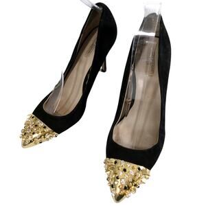 ZARA WOMAN! BLACK GENUINE SUEDE LEATHER GOLD/RHINESTONE TOE HEELS! SZ 9.5M