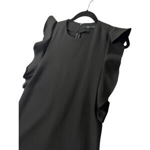 ZARA WOMAN Black Flutter Sleeve Shift Dress M Mini Minimalist Modern Chic