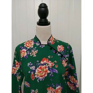 ZARA WOMAN Cheongsam Mini Dress Mandarin Collar Green Floral Size Small