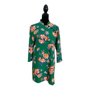 ZARA WOMAN Cheongsam Mini Dress Mandarin Collar Green Floral Size Small