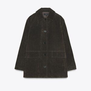 ZARA WOMAN FW25 DARK KHAKI 100% SUEDE JACKET SMALL