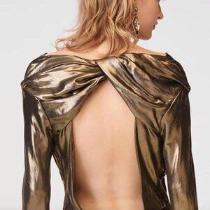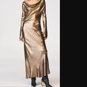 ZARA WOMAN GOLD LIMITED EDITION DRESS WITH DRAPED DETAIL SIZE M NWOT