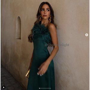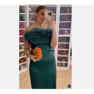 ZARA WOMAN GREEN FEATHER DRESS SATIN MIDI STRAPLESS wedding Party DRESS NWT
