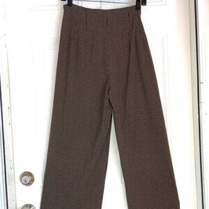 ZARA WOMAN Gingham Plaid Brown Wide Leg Culottes Trouser Slacks Womens Large