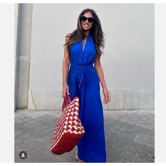 ZARA WOMAN LINEN BLEND HALTER DRESS INK BLUE XS S M L | 4786/293 NWT