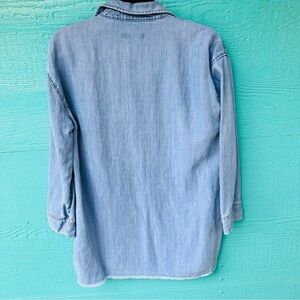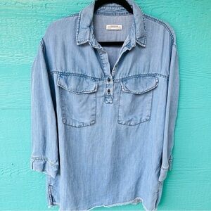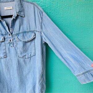 ZARA WOMAN LYOCELL LINEN CHAMBRAY DENIM TUNIC TOP FRAYED HEM SIZE MEDIUM