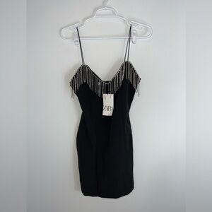 ZARA WOMAN NWT JEWEL FRINGED MINI DRESS BLACK SIZE: XS