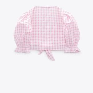 ZARA WOMAN NWT PINK-WHITE CROPPED GINGHAM TOP SIZE MEDIUM 0881/007.
