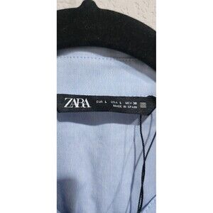 ZARA WOMAN OVERSIZED SATIN EFFECT POPLIN BUTTON DOWN SHIRT BLUE L. Condition is Pre-owned - Excellent. Shipped with USPS Ground Advantage.