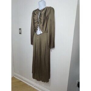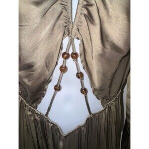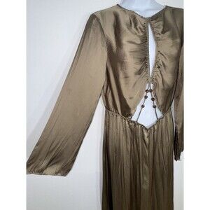 ZARA Wrinkle Satin Effect Cut Out Midi Dress in Taupe / Khaki