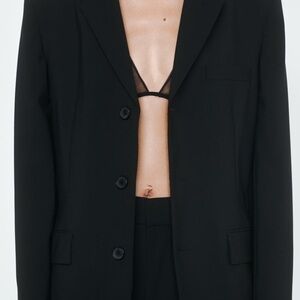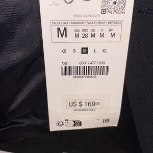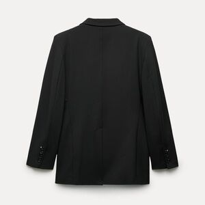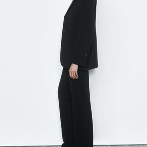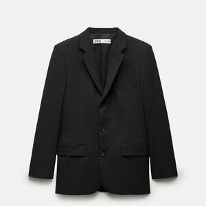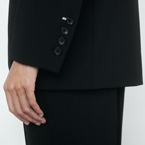 Zara STRAIGHT WOOL BLEND BLAZER ZW COLLECTION BLACK SIZE M NEW WITH TAG Straight cut blazer made of wool blend fabric. Notched lapel collar and long sleeves with buttoned slit cuffs and shoulder pads. Front flap pockets and chest welt pocket. Tonal interior lining. Front button closure. 52% polyester
