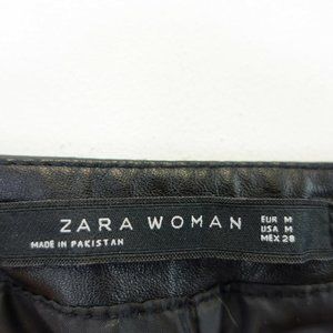 ZARA WOMAN Skirt Black Leather Midi MEDIUM Stretch Lined Slit Chic Sexy