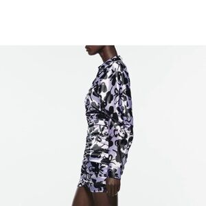 ZARA WOMAN "The Dita" Satin Printed Ruched dress in size XXL