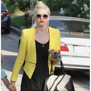 ZARA WOMAN Yellow Tweed Boucle Fantasy Moto Jacket Blazer Size small open style