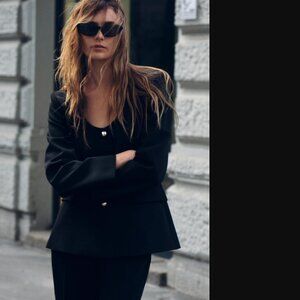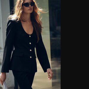 ZARA WOMEN BLACK ROUND NECK BLAZER SIZE XS NWT