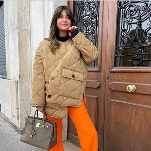 ZARA WOMEN CAMEL OVERSIZED PUFFER JACKET COAT TOFFEE 0518/056