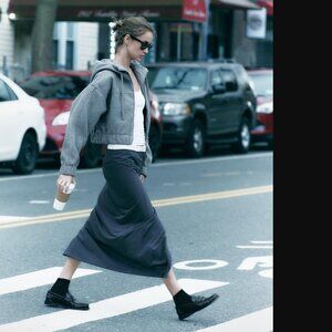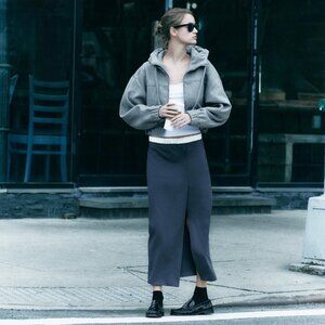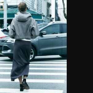 ZARA WOMEN CHARCOAL CONTRASTING BOXER WAIST MIDI SKIRT SIZE S NWOT