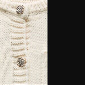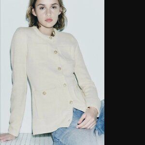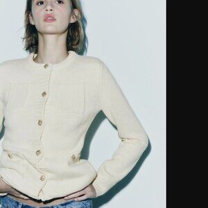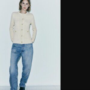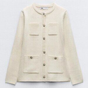 ZARA WOMEN ECRU PADDED SHOULDERS KNIT CARDIGAN SIZE S or XL NWT