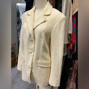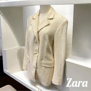 ZARA WOMEN NEW 100% Cotton Tweed Textured BLAZER w/ Pockets OYSTER WHITE Size L